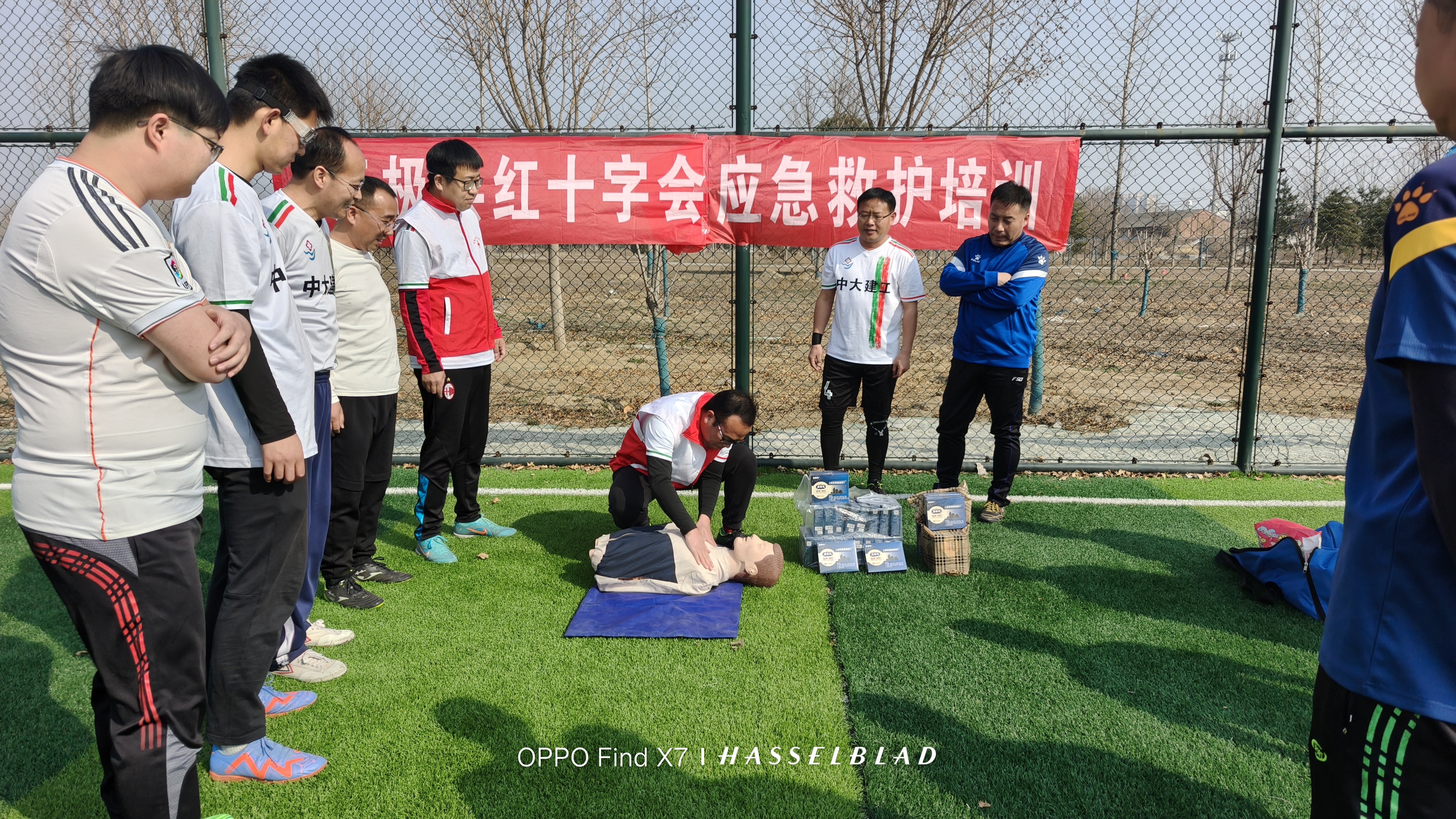 为进一步普及应急救护知识,增强公众在突发事件中的自救互救能力,无极县红十字会在足球场开展了一场内容丰富、形式多样的应急救护培训活动。本次活动以“急救进球场,安全伴我行”为主题,吸引了众多足球爱好者、体育教练及志愿者参与,通过心肺复苏演练和疼痛凝胶发放等环节,切实提升全民急救技能与健康意识。